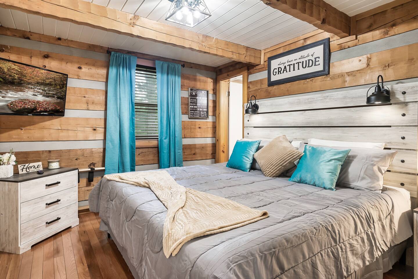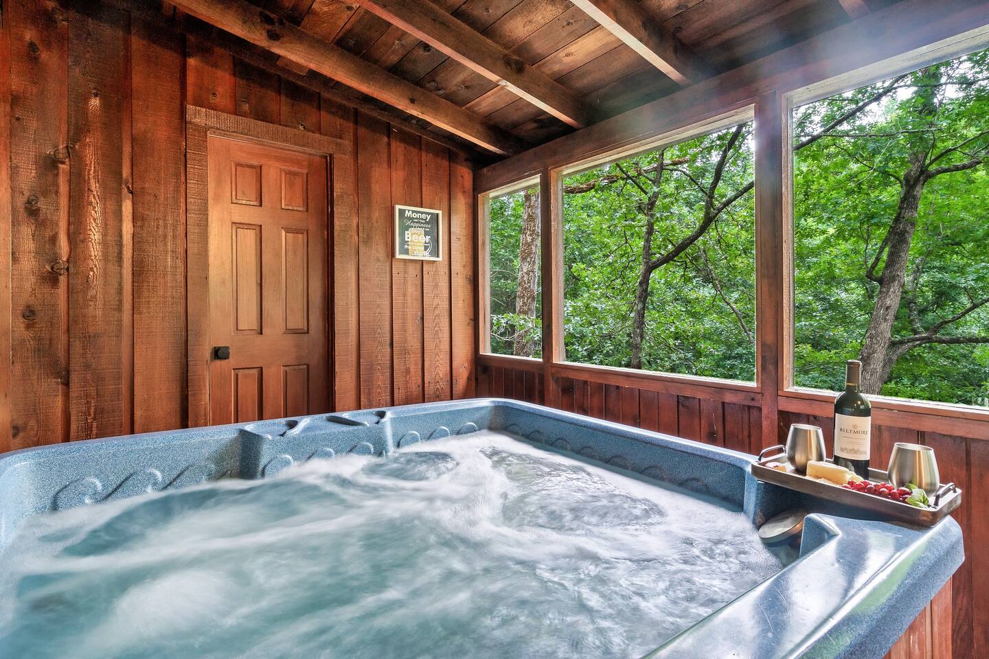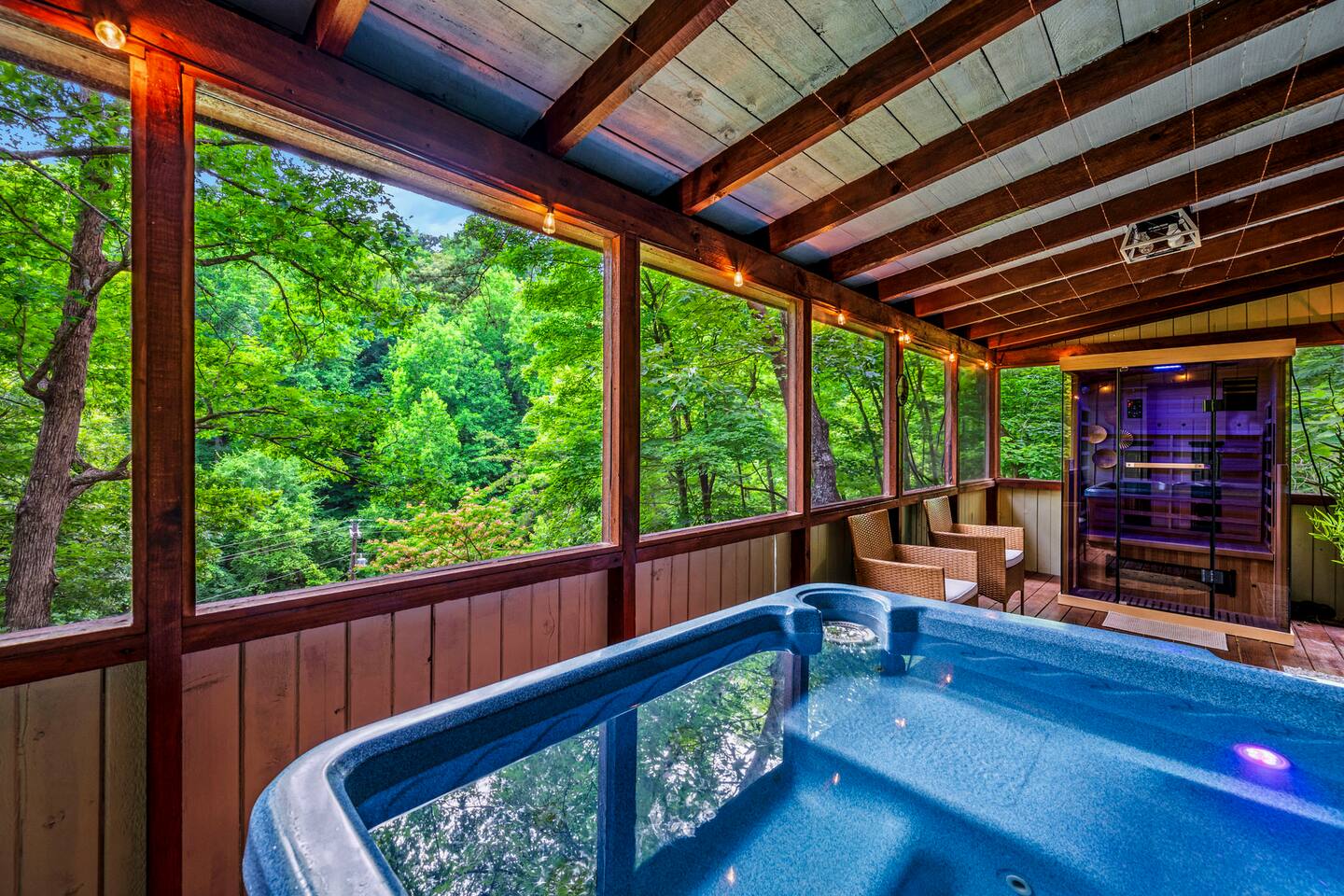We offer a 5% discount to our primary bookers/ guests who are seniors, military, and first responders! :) 15 Min drive to Pigeon forge 19 Min drive to Dollywood 18 Min drive to Great Smoky Mountains National Park 35 Min drive to Gatlinburg - Free community pool and stocked fishing pond access when you stay with us (15 minute drive away) **Experience Sevierville and Wears Valley With Us & Learn More Below** KEY FEATURES - Community pool and fishing pond access for free while staying (15 min drive) - Pool is seasonal and typically closes end of September and opens March/April - Luxurious FAR Infrared Sauna! - 2 Bedrooms; 2 king-size beds & 1 sleeper sofa & 2 Full Bathrooms - Luxurious memory foam mattresses - Open plan and fully stocked kitchen - Fully stocked Keurig coffee/cappuccino/latte maker & French Press - Modern-Rustic and cozy living area with indoor gas fireplace - Luxurious hot tub - Super High-speed WiFi (300 Mbps) and HDTV Roku entertainment system with 65" TV and surround sound - Pet-Friendly ($50/pet/night pet fee; $150 minimum per stay) - Only 18 minutes to the nearest GSMNP entrance and hiking trails Here Are A Few Kind Words From Past Guests: "Awesome weekend get away. Lovely cabin." "You guys did a great job of helping make our experience in the Smoky Mountains memorable! Thank you" "Very nice clean cabin. Really enjoyed the peace and quiet. The entire process from booking to checking out was very easy. I will definitely be booking with them again." "This cabin was absolutely perfect for what we needed! " "We enjoyed our stay at Bluff Haven. The location was great, it was very clean, and had everything we needed. We stayed for 6 nights in early-mid July, and the weather was unbearably hot, so we did not take advantage of the Jacuzzi. But the a/c inside the cabin was perfect and was certainly a relief after long, hot touristy days." **BEDROOMS & BATHROOMS** This ultra cozy & comfy cabin has two spacious bedrooms with room for 6 guests. The single-level cabin boasts two bedrooms with brand new, luxurious king-size memory foam beds with reading lights and USB ports for charging your devices while you sleep. The master bedroom has an en-suite full bathroom and the second full bathroom is right outside the other bedroom and living room. After a long day hiking or doing all the touristy things, slip into the luxuriously, silky soft bedding on your memory foam, king size mattress and dream the night away leaving you refreshed for your next adventure-filled day! **KITCHEN & LOUNGE** Enjoy the convenience and coziness of this open-plan lounge area with a beautiful stone, gas fireplace. The fully equipped kitchen comes fully stocked, including an amazing Keurig coffee/cappuccino/latte maker and French Press (BYO beans). The single level cabin has an open plan design leading from the lounge area to the kitchen and dining area. There is a washer/dryer as well inside the second bedroom closet. **OUTSIDE SPACE** This cozy home offers easy access to the outdoors thanks to the front & back decks. Step out onto the back deck where you can have your own private zen zone! Enjoy watching the sunset from your private hot tub or FAR Infrared Sauna in a tranquil setting. Or sip your morning coffee and watch the sunrise. Or relax on the front porch swing with a good book and cup of coffee. Allow the breathtaking and peaceful natural surroundings to clear your mind. For more unwinding, take a quick 15 min ride down to the huge community pool and stocked fishing pond. They have a great, little cafe at the pool for a quick bite to eat as well. Come escape your busy life and slow it down...find your R&R at Bluff Haven! **Book Today & Let Us Take Care Of You In Sevierville!** Please check out all our properties in our profile as we have cabins of all different sizes and amenities to suit your needs.
