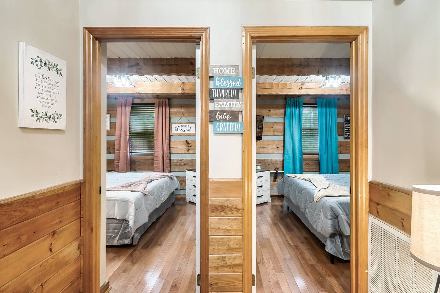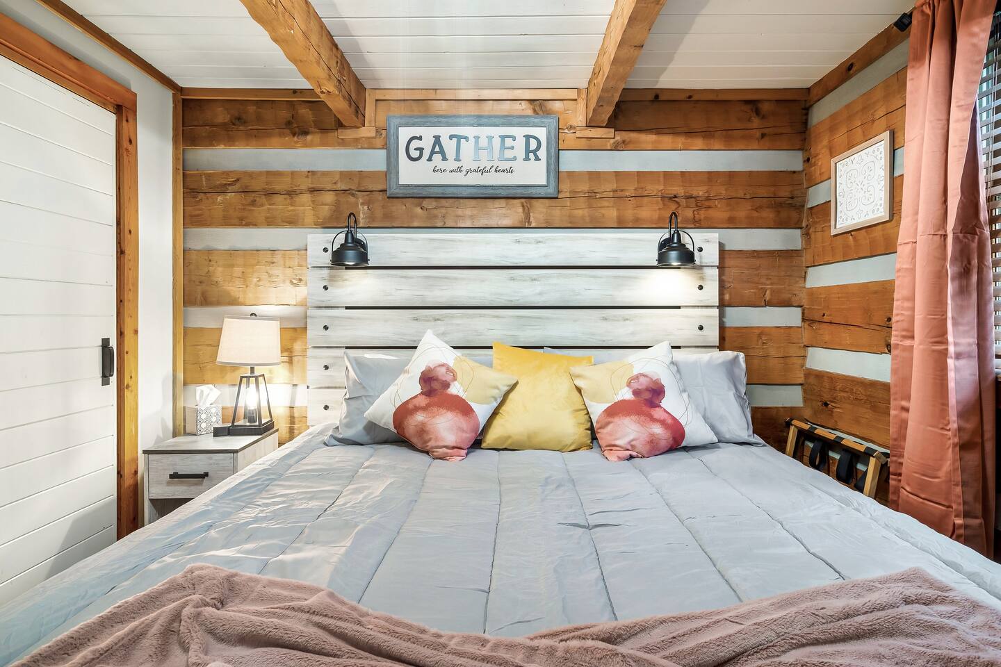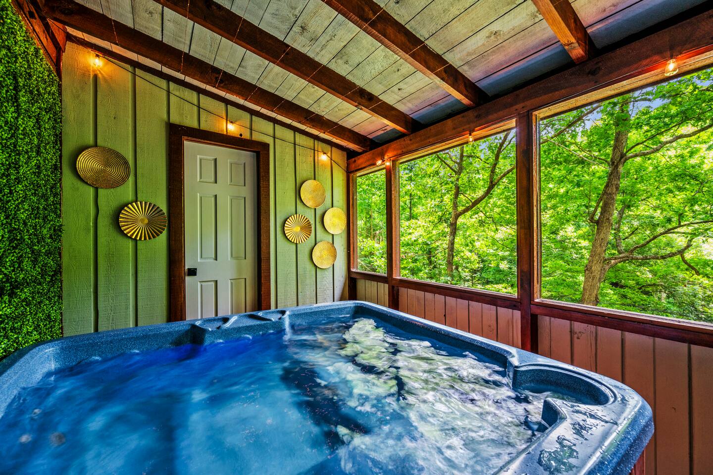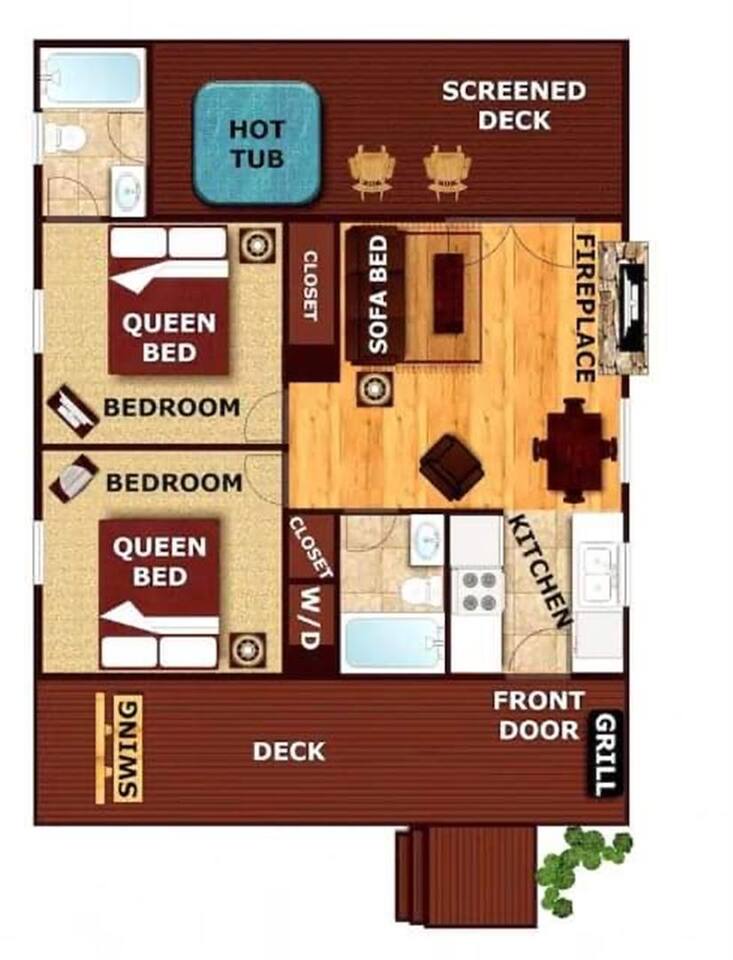 We offer a 5% discount to our primary bookers/ guests who are seniors, military, and first responders! :) 15 Min drive to Pigeon forge 19 Min drive to Dollywood 18 Min drive to Great Smoky Mountains National Park 35 Min drive to Gatlinburg - Free community pool and stocked fishing pond access when you stay with us (15 minute drive away) **Experience Sevierville and Wears Valley With Us & Learn More Below** KEY FEATURES - Community pool and fishing pond access for free while staying (15 min drive) - Pool is seasonal and typically closes end of September and opens March/April - Luxurious FAR Infrared Sauna! - 2 Bedrooms; 2 king-size beds & 1 sleeper sofa & 2 Full Bathrooms - Luxurious memory foam mattresses - Open plan and fully stocked kitchen - Fully stocked Keurig coffee/cappuccino/latte maker & French Press - Modern-Rustic and cozy living area with indoor gas fireplace - Luxurious hot tub - Super High-speed WiFi (300 Mbps) and HDTV Roku entertainment system with 65" TV and surround sound - Pet-Friendly ($50/pet/night pet fee; $150 minimum per stay) - Only 18 minutes to the nearest GSMNP entrance and hiking trails Here Are A Few Kind Words From Past Guests: "Awesome weekend get away. Lovely cabin." "You guys did a great job of helping make our experience in the Smoky Mountains memorable! Thank you" "Very nice clean cabin. Really enjoyed the peace and quiet. The entire process from booking to checking out was very easy. I will definitely be booking with them again." "This cabin was absolutely perfect for what we needed! " "We enjoyed our stay at Bluff Haven. The location was great, it was very clean, and had everything we needed. We stayed for 6 nights in early-mid July, and the weather was unbearably hot, so we did not take advantage of the Jacuzzi. But the a/c inside the cabin was perfect and was certainly a relief after long, hot touristy days." **BEDROOMS & BATHROOMS** This ultra cozy & comfy cabin has two spacious bedrooms with room for 6 guests. The single-level cabin boasts two bedrooms with brand new, luxurious king-size memory foam beds with reading lights and USB ports for charging your devices while you sleep. The master bedroom has an en-suite full bathroom and the second full bathroom is right outside the other bedroom and living room. After a long day hiking or doing all the touristy things, slip into the luxuriously, silky soft bedding on your memory foam, king size mattress and dream the night away leaving you refreshed for your next adventure-filled day! **KITCHEN & LOUNGE** Enjoy the convenience and coziness of this open-plan lounge area with a beautiful stone, gas fireplace. The fully equipped kitchen comes fully stocked, including an amazing Keurig coffee/cappuccino/latte maker and French Press (BYO beans). The single level cabin has an open plan design leading from the lounge area to the kitchen and dining area. There is a washer/dryer as well inside the second bedroom closet. **OUTSIDE SPACE** This cozy home offers easy access to the outdoors thanks to the front & back decks. Step out onto the back deck where you can have your own private zen zone! Enjoy watching the sunset from your private hot tub or FAR Infrared Sauna in a tranquil setting. Or sip your morning coffee and watch the sunrise. Or relax on the front porch swing with a good book and cup of coffee. Allow the breathtaking and peaceful natural surroundings to clear your mind. For more unwinding, take a quick 15 min ride down to the huge community pool and stocked fishing pond. They have a great, little cafe at the pool for a quick bite to eat as well. Come escape your busy life and slow it down...find your R&R at Bluff Haven! **Book Today & Let Us Take Care Of You In Sevierville!** Please check out all our properties in our profile as we have cabins of all different sizes and amenities to suit your needs.