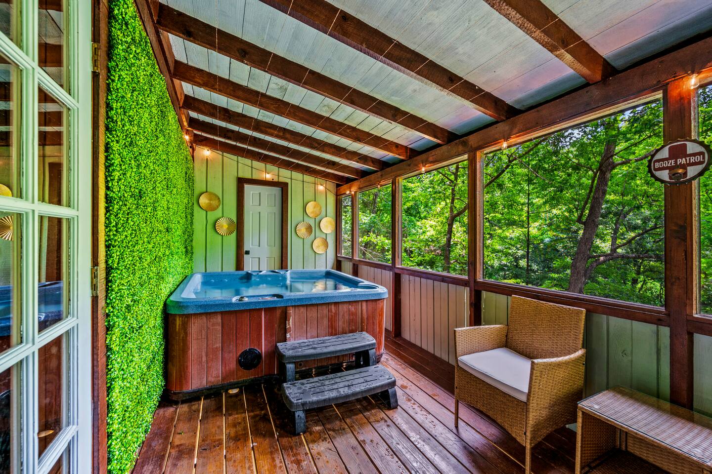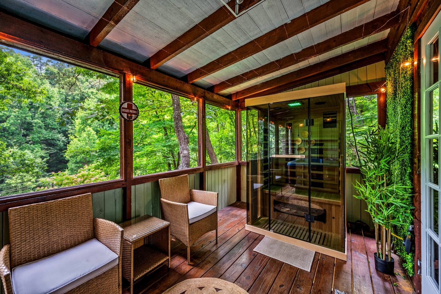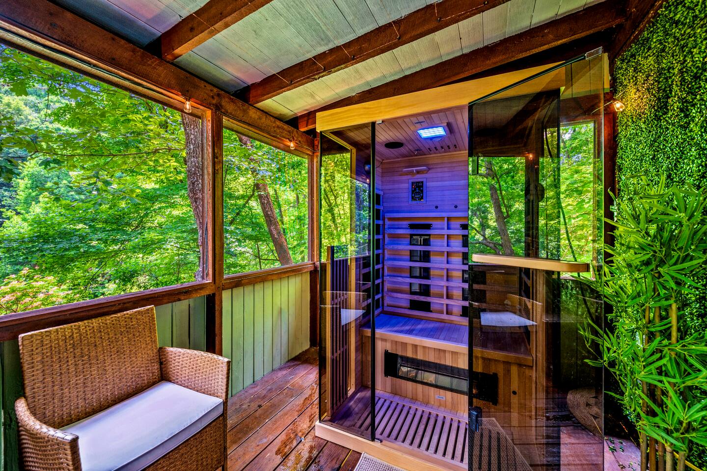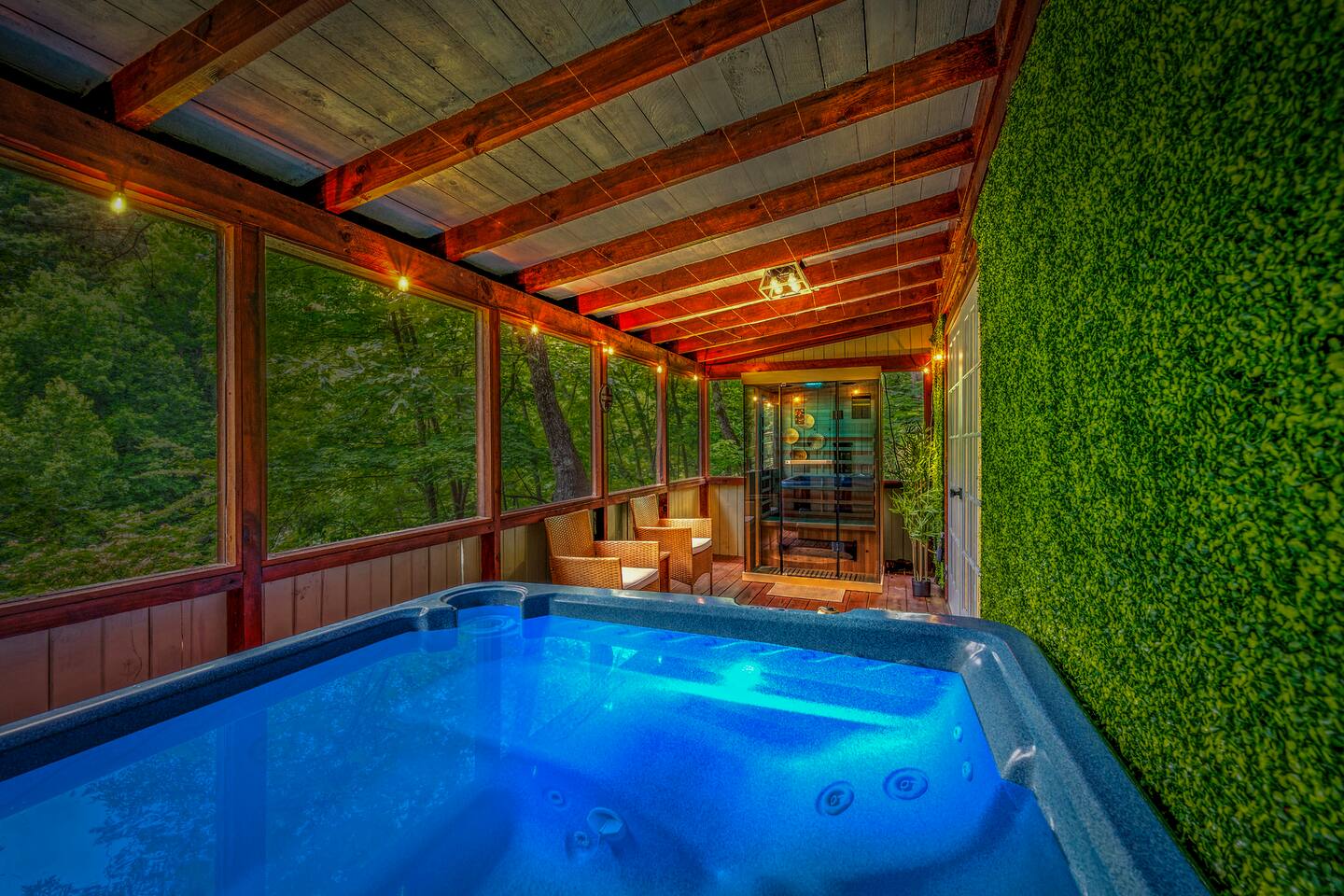 Discover Bluff Haven: A Modern-Rustic Smoky Mountains Retreat! Perfect for families or couples, this 2BR/2BA cabin boasts a full kitchen with Keurig cappuccino maker, a Private Zen Zone with hot tub, and FAR Infrared Sauna with color therapy! Enjoy serene natural surroundings and access to a community pool and fishing pond. Located between Wears Valley and Pigeon Forge for endless adventure. Book your Smoky Mountains escape today!