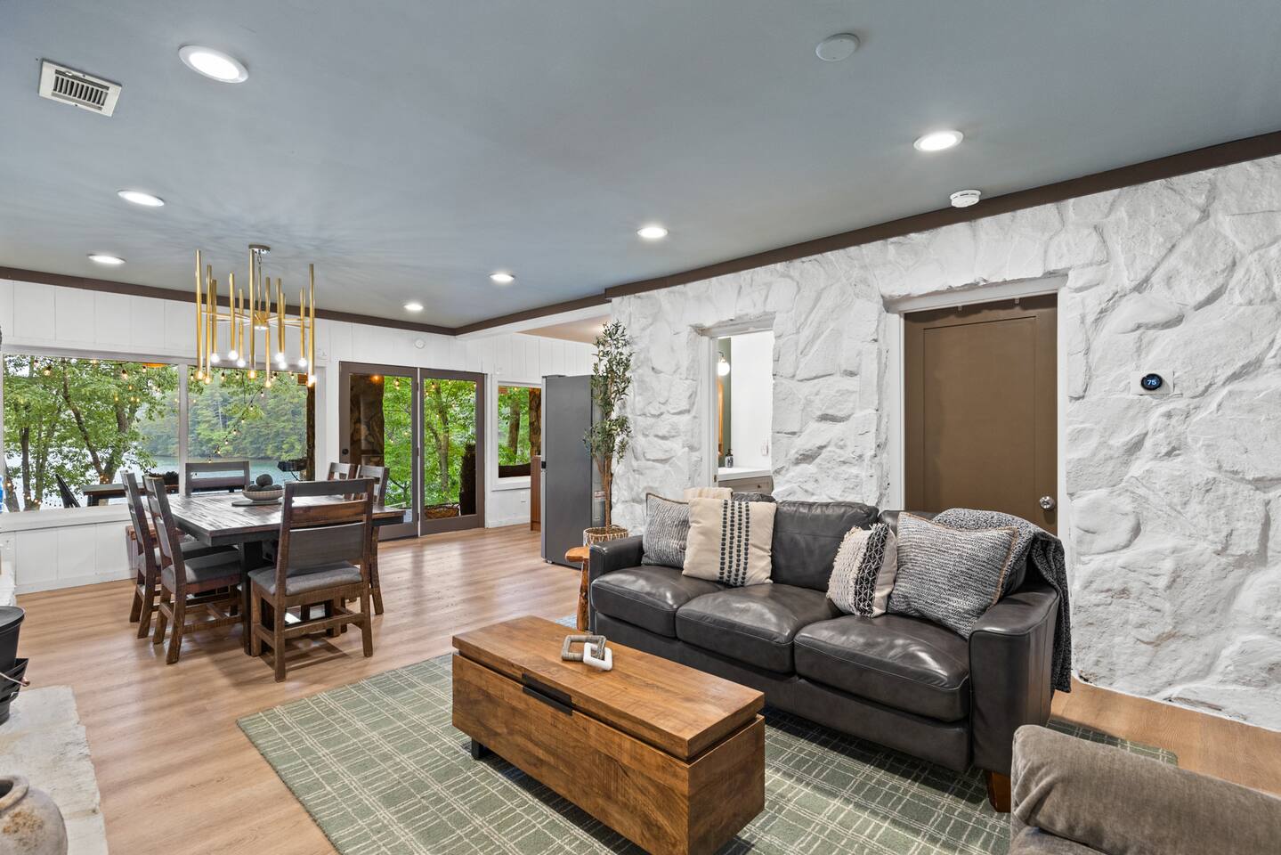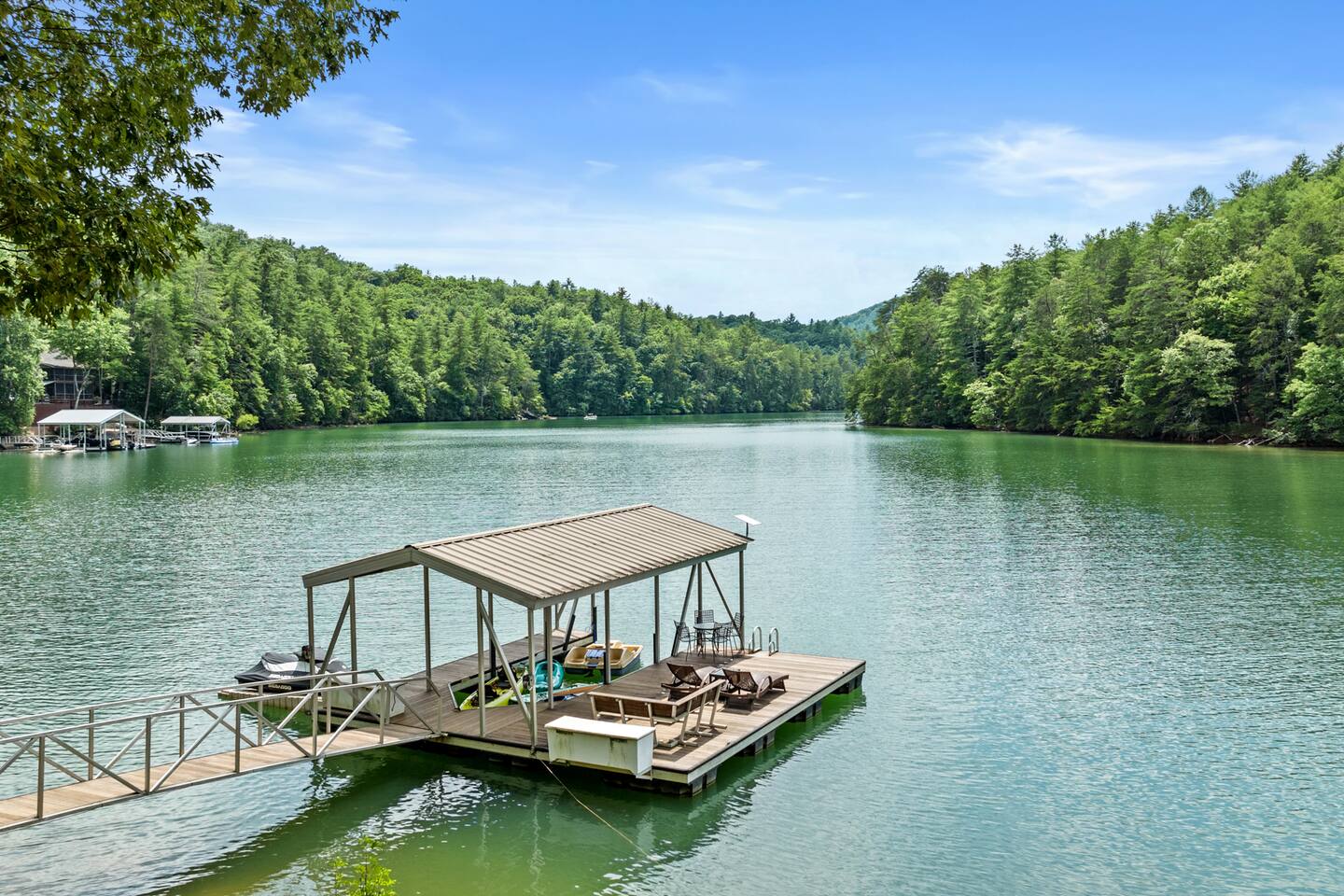 NEW LISTING DISCOUNT!! 🌅 Lakeshore Lodge on Blue Ridge Lake Sleeps 12 | Pet-Friendly 🐾 | Hot Tub 🔥 | Firepit | Kayaks, SUPs & Pedal Boat 🚣 | Private Dock --- Life Slows Down at the Water’s Edge Step out the door and straight into the rhythm of the lake. Morning mist rising off the water, coffee in hand on the dock, bare feet and a big breath of fresh mountain air—this is the magic of Lakefront Lodge. Here, the lake isn’t just a view—it’s your backyard. Spend the day paddling through calm coves, sunbathing on your private dock, or jumping in for a refreshing swim. When the sun begins to dip, light the firepit, hop in the hot tub, and watch the stars reflect on the water. This isn’t just a vacation. It’s lake living at its best. --- 🛏 5 Bedrooms | 2 Baths | Sleeps 12 Comfortably Room for everyone you love, and space for everyone to recharge. • Main-level master suite with king bed, smart TV, and ensuite • 4 additional bedrooms with queen beds & bunk beds • Modern bathrooms, cozy linens, and peaceful views from many rooms Whether you're reconnecting with friends or gathering generations of family, this home makes it easy to unwind and just be together. --- 🌅 Views from the Heart of the Home The living room, deck, patio, and several bedrooms offer breathtaking views of Blue Ridge Lake. Curl up by the fire or enjoy dinner with a front-row seat to the shimmering water—nature becomes part of your stay. --- 🔥 Evenings That Glow The lake doesn’t go quiet when the sun sets—it comes alive in a new way. • Soak under the stars in the private hot tub • Roast s’mores around the firepit with the water shimmering behind you • Lounge on the oversized deck with a glass of wine and nowhere to be • Grill dinner on the gas BBQ while the kids play • Challenge the crew to a game on the shuffleboard table indoors 🎯 Every night here is a scene you’ll remember long after the trip ends. --- 🚣♀️ Your Private Lake Playground Adventure is just a few steps away—literally. Kayaks, stand-up paddleboards, and a pedal boat are available for rent so you can glide across the glassy water, explore the shoreline, or simply float with the current. Whether you’re an early morning paddler or a sunset cruiser, the lake is yours to discover. And if you just want to be—your private dock is perfect for fishing, sunbathing, or stargazing. It’s your front-row seat to nature’s show. --- 🍳 Kitchen & Dining for Real Life on the Lake A day on the water builds an appetite. The fully-equipped kitchen makes it easy to gather and feast. • Stainless steel appliances • Tons of prep space for big meals or simple snacks • Open layout keeps everyone connected • Gas grill outside—perfect for BBQ nights with a lake view Dine inside with a view, or take dinner out on the deck and make it a true lakeside occasion. --- 🐾 Bring Your Dogs — They Deserve the Lake Too! There’s no pet limit here—just a simple $75 per pet, per night fee. Your furry friends will love exploring, sniffing, swimming, and snoozing in the sun right alongside you. --- 💬 Why Guests Fall in Love with Lakeshore Lodge ✔ Steps from the water with private dock access ✔ Beautiful lake views from multiple rooms ✔ Optional kayaks, paddleboards & pedal boat for lake adventures ✔ Hot tub, fire-pit, gas grill, shuffleboard and large deck made for lounging ✔ Sleeps 12 comfortably with space to gather and retreat ✔ Close to hiking, waterfalls, downtown Blue Ridge & wineries ✔ Pet-friendly and packed with charm --- Book Your Lakefront Escape Today You don’t just stay at Lakeshore Lodge — you live here. For a weekend or a week, this becomes your home on the water. The place you’ll dream about long after you’ve gone. Come float. Breathe. Laugh. Reconnect. This is the lake life you’ve been waiting for. 🛶 P.S. Jet Ski is for owner's own personal use only.