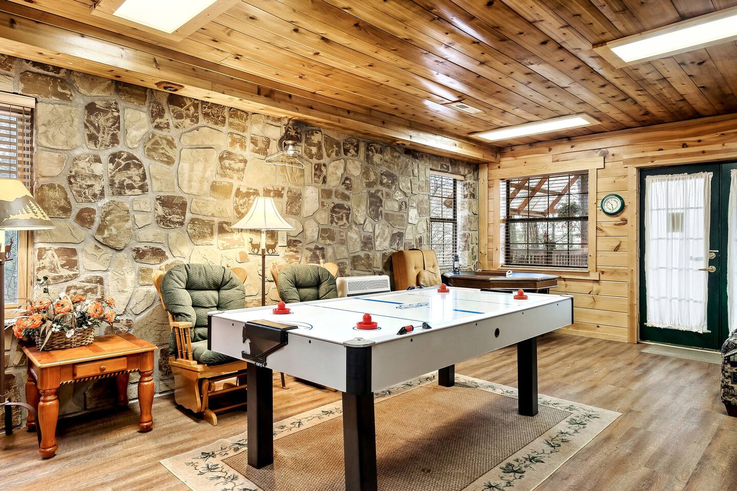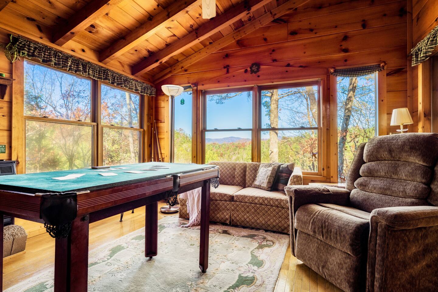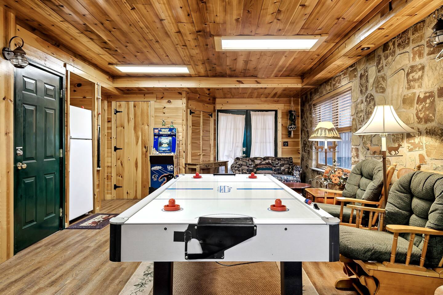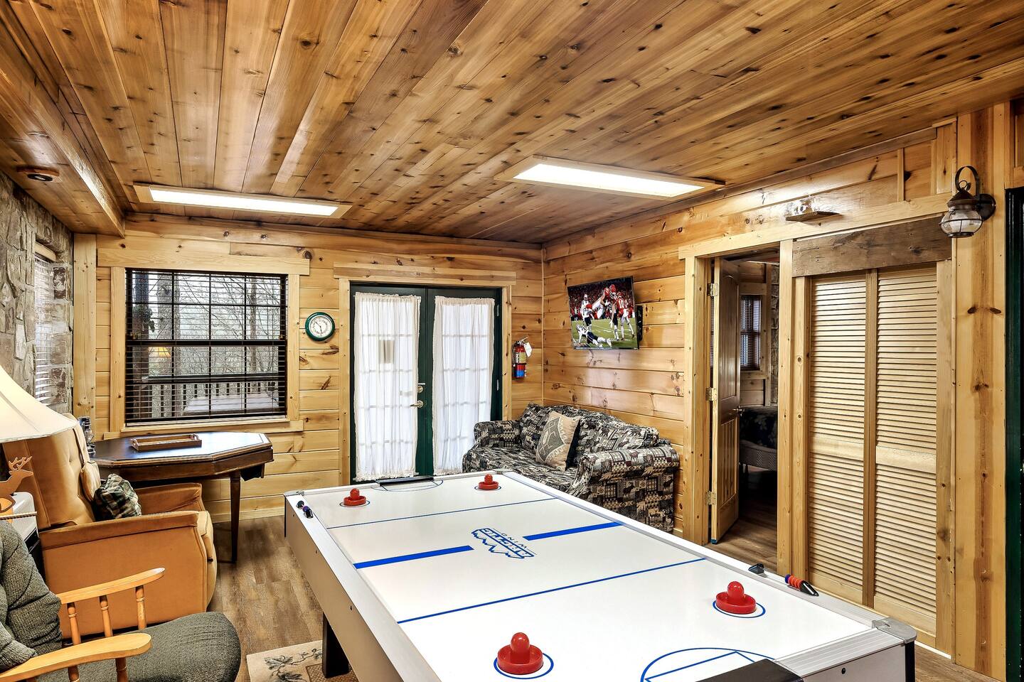 We offer a 5% discount to our primary bookers/ guests who are seniors, military, and first responders! :) - Just a 29-minute scenic drive to the vibrant Pigeon Forge - 26 minutes from the magical Dollywood - A short 36-minute journey to the charming Gatlinburg - And 40 minutes from the awe-inspiring Great Smoky Mountains National Park Welcome to Alpine Shamrock 🌈—your hidden gem in the Smoky Mountains where unforgettable memories and magical moments are waiting to be made. Tucked away on a quiet mountain ridge, this charming 3BR/2BA cabin isn't just a place to stay—it's your peaceful retreat, a playground for family fun, and a front-row seat to nature's beauty. Wake up to mountain views 🌄 and sip coffee in the sunroom or sitting area as sunlight pours through the trees. After breakfast in the open, fully stocked kitchen 🍳, head out for a day of adventure—Pigeon Forge (29 mins), Dollywood (26 mins), Gatlinburg (36 mins), and the Smoky Mountain National Park (40 mins) are all within easy reach. Back home, unwind in the private hot tub as the sun sets over the peaks 🌅, or gather your crew in the downstairs game room to battle it out over air hockey and arcade games 🎮. With fast WiFi, a 65" Roku HDTV with surround sound, and a warm gas fireplace 🔥, there’s something for everyone—whether you're playing, watching, or just relaxing. The cabin comfortably sleeps 10: * 1 king bedroom on the main level * 1 queen bedroom upstairs (open loft style - steep ladder stairs) * 1 queen bedroom downstairs * 1 sleeper sofa + futon for extra guests Enjoy jetted tubs, mountain views, and thoughtful touches like handicap accessibility features (ramp, no-step entry, grab bars), a washer/dryer, and pet-friendly accommodations 🐾 (\$50/pet/night, \$150 min). The large, open layout connects the kitchen, living room, and enclosed patio, offering space to reconnect and recharge. **Guests love Alpine Shamrock:** ⭐ “The views were breathtaking. The game room was a hit with our kids!” ⭐ “Felt right at home. Peaceful, clean, and full of thoughtful amenities.” ⭐ “Hot tub nights with the stars above—absolute magic. We’ll be back!” Bonus: Traveling with a larger group? We own the two neighboring cabins as well—rent all three to sleep up to 30 guests across 5 private acres! Perfect for family reunions, retreats, or group celebrations 🎉 As a thank you, we offer 5% off to seniors, military, and first responders 🙏. And don’t forget—check out Tranquilo Stays online to see all of our properties! Whether you’re seeking mountain serenity, outdoor adventure, or cozy nights by the fire, Alpine Shamrock is your pot of gold at the end of the rainbow. ✨ Book your magical escape today!