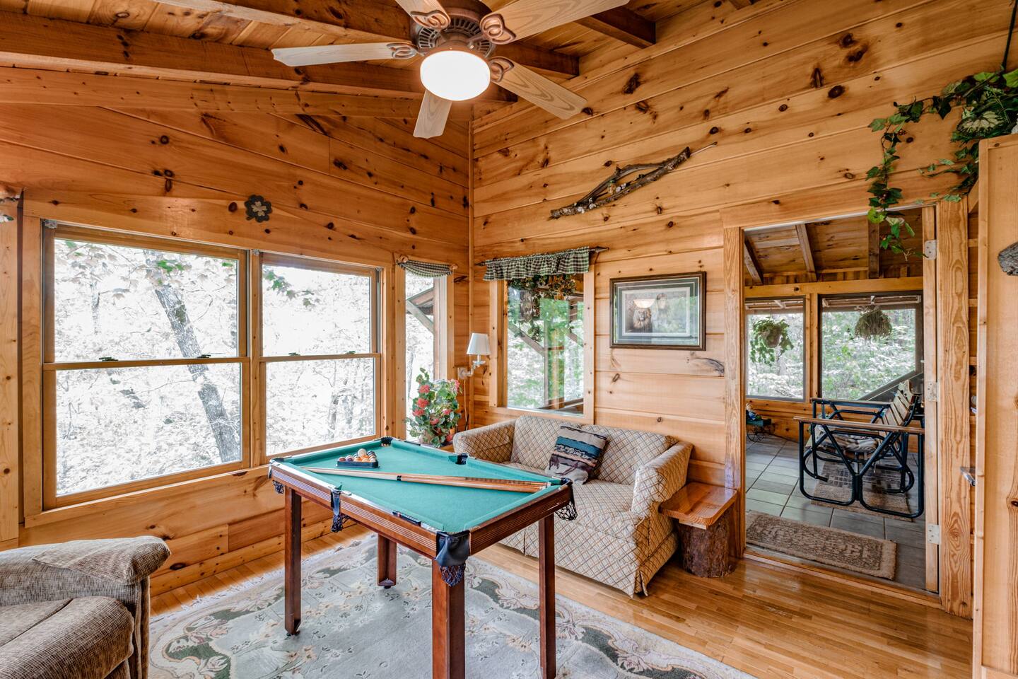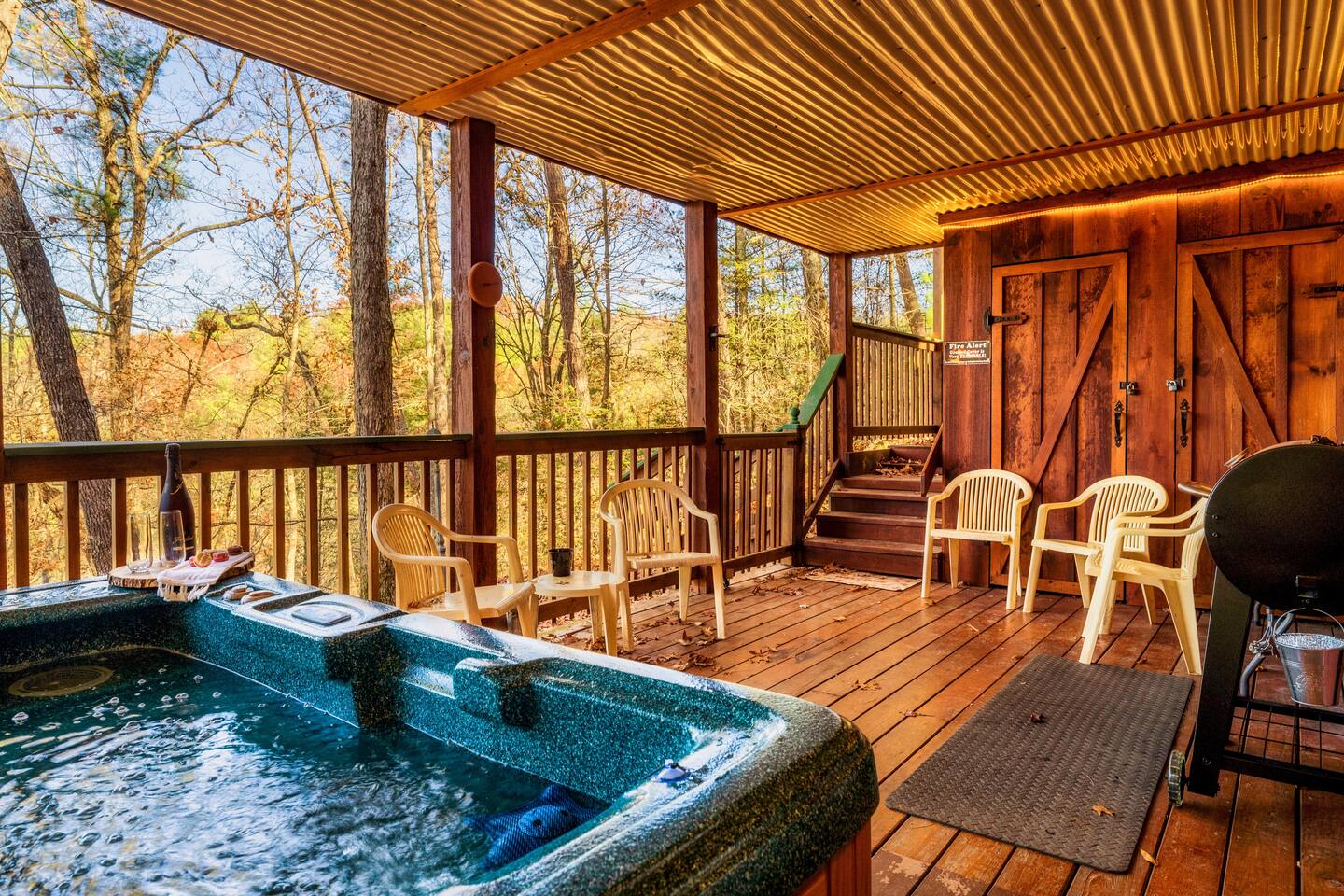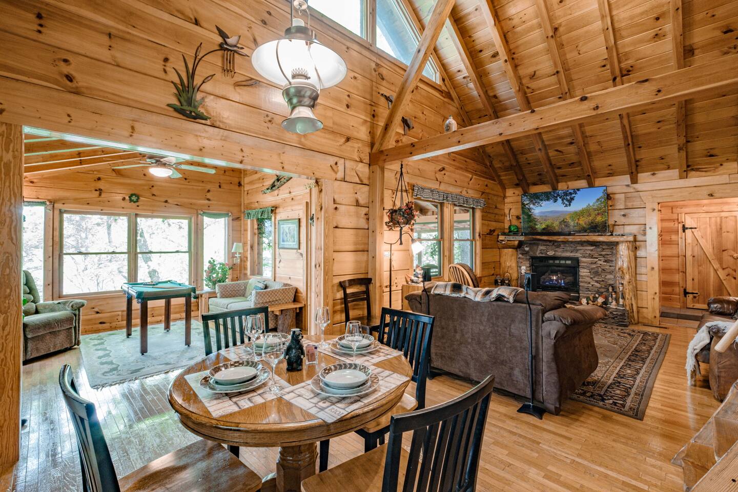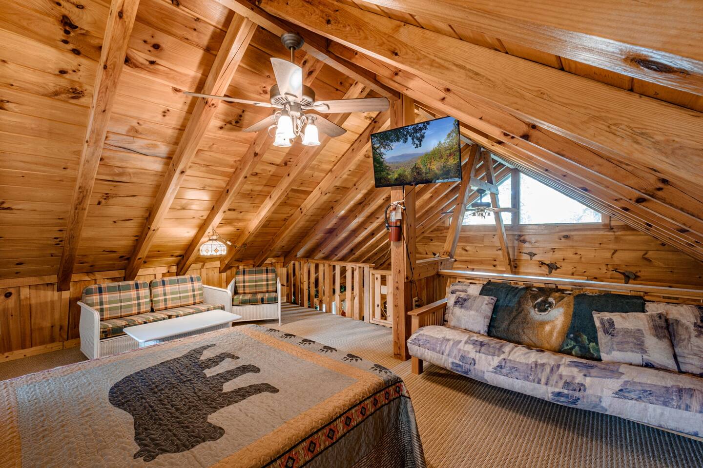 We offer a 5% discount to our primary bookers/ guests who are seniors, military, and first responders! :) - Just a 29-minute scenic drive to the vibrant Pigeon Forge - 26 minutes from the magical Dollywood - A short 36-minute journey to the charming Gatlinburg - And 40 minutes from the awe-inspiring Great Smoky Mountains National Park Welcome to Alpine Shamrock 🌈—your hidden gem in the Smoky Mountains where unforgettable memories and magical moments are waiting to be made. Tucked away on a quiet mountain ridge, this charming 3BR/2BA cabin isn't just a place to stay—it's your peaceful retreat, a playground for family fun, and a front-row seat to nature's beauty. Wake up to mountain views 🌄 and sip coffee in the sunroom or sitting area as sunlight pours through the trees. After breakfast in the open, fully stocked kitchen 🍳, head out for a day of adventure—Pigeon Forge (29 mins), Dollywood (26 mins), Gatlinburg (36 mins), and the Smoky Mountain National Park (40 mins) are all within easy reach. Back home, unwind in the private hot tub as the sun sets over the peaks 🌅, or gather your crew in the downstairs game room to battle it out over air hockey and arcade games 🎮. With fast WiFi, a 65" Roku HDTV with surround sound, and a warm gas fireplace 🔥, there’s something for everyone—whether you're playing, watching, or just relaxing. The cabin comfortably sleeps 10: * 1 king bedroom on the main level * 1 queen bedroom upstairs (open loft style - steep ladder stairs) * 1 queen bedroom downstairs * 1 sleeper sofa + futon for extra guests Enjoy jetted tubs, mountain views, and thoughtful touches like handicap accessibility features (ramp, no-step entry, grab bars), a washer/dryer, and pet-friendly accommodations 🐾 (\$50/pet/night, \$150 min). The large, open layout connects the kitchen, living room, and enclosed patio, offering space to reconnect and recharge. **Guests love Alpine Shamrock:** ⭐ “The views were breathtaking. The game room was a hit with our kids!” ⭐ “Felt right at home. Peaceful, clean, and full of thoughtful amenities.” ⭐ “Hot tub nights with the stars above—absolute magic. We’ll be back!” Bonus: Traveling with a larger group? We own the two neighboring cabins as well—rent all three to sleep up to 30 guests across 5 private acres! Perfect for family reunions, retreats, or group celebrations 🎉 As a thank you, we offer 5% off to seniors, military, and first responders 🙏. And don’t forget—check out Tranquilo Stays online to see all of our properties! Whether you’re seeking mountain serenity, outdoor adventure, or cozy nights by the fire, Alpine Shamrock is your pot of gold at the end of the rainbow. ✨ Book your magical escape today!