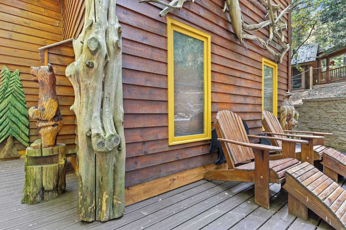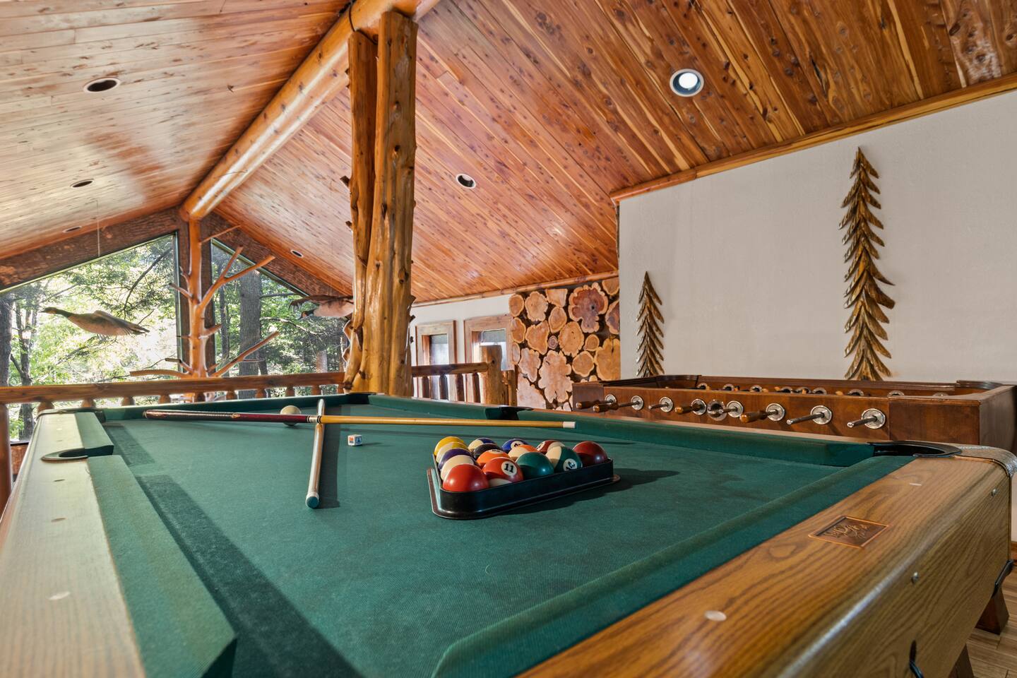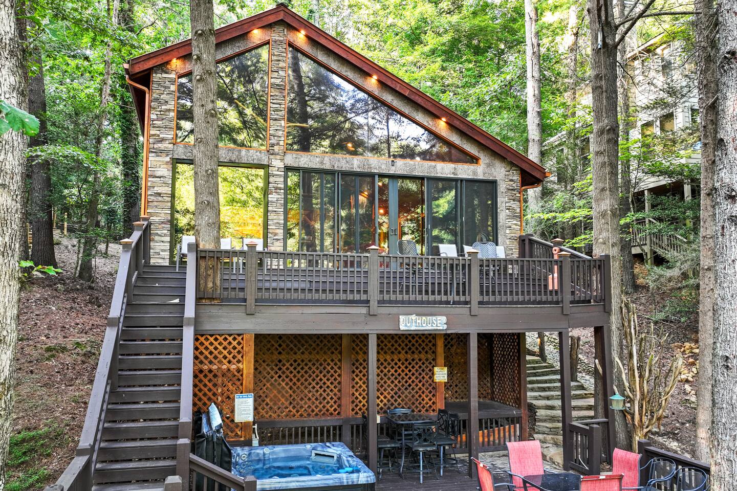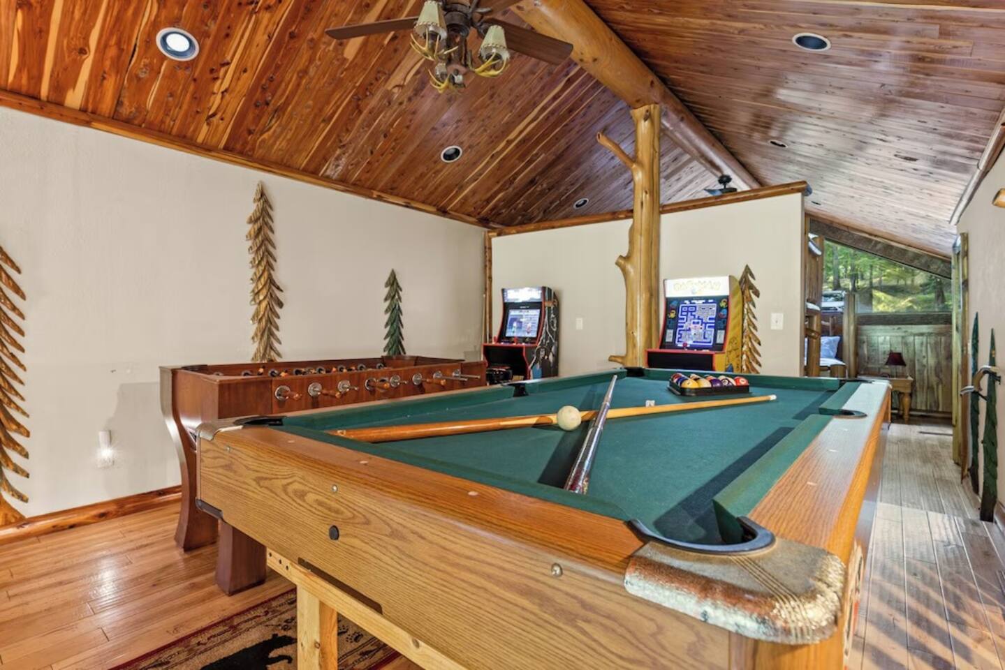 🌟We offer a 5% discount to our primary bookers/ guests who are seniors, military, and first responders!🌟 ✨Key Features: ★ Main level King Master suite with a private bath, walk-in shower, seasonal gas fireplace, and a 42" flat-screen TV. ★ Upper level King bedroom with a private bath, walk-in shower, bunk beds, and a 42" flat-screen TV. ★ Great Room with a 72" flat-screen HDTV, cable, seasonal gas fireplace, and a comfortable sectional sofa. ★ Fully equipped kitchen with an economy-sized oven. ★ Entertainment options including a pool table, foosball table, and arcade games. ★ Private deck with a hot tub, fire pit, and direct access to the riverbank. ★ Fly fishing from the private dock. ★ Dog-friendly (leash required per community rules -- A pet fee of $50/pet/night applies with a $150 per stay minimum, with potential discounts for multiple pets or longer stays). 🏡 Welcome to Whitewater Adventure Lodge - Where Luxury Meets Nature! Imagine waking up to the gentle sound of the Cartecay River flowing right outside your window. As the morning sun dances on the water, you sip your coffee on the deck, surrounded by the serenity of nature. This is not just a getaway; it’s an experience that awaits you at Whitewater Adventure Lodge. ✨The Journey Begins: Your adventure starts the moment you step into the grand great room. The towering ceilings and expansive windows frame the picturesque river views, inviting you to unwind and immerse yourself in the tranquil surroundings. The 72" HDTV with surround sound is perfect for a cozy movie night, while the sectional sofa beckons you to relax by the seasonal gas fireplace. ✨A Culinary Haven: As you explore further, the custom kitchen reveals itself as a chef's paradise. Picture yourself preparing a feast with high-end appliances and ample counter space. The aroma of a delicious meal fills the air as you gather around the dining table, sharing stories and laughter with family and friends. ✨Retreat to Luxury: In the evening, retreat to the King Master Suite on the main level. The luxurious king bed promises a restful night's sleep, while the seasonal gas fireplace adds a touch of warmth and romance. A private bath with a walk-in shower and a 42" flat-screen TV complete this haven of comfort. Upstairs, the second King bedroom offers a cozy retreat with its own private bath, walk-in shower, and additional bunk beds, making it perfect for families. ✨Fun and Games: For those seeking entertainment, the loft is a treasure trove of fun. Imagine challenging your loved ones to a game of pool or foosball, or reliving your childhood with the arcade games. Laughter echoes through the lodge, creating memories that will last a lifetime. ✨Nature’s Embrace: Step outside onto your private deck and let the beauty of the Cartecay River captivate you. The hot tub invites you to soak your cares away as you gaze at the stars. Gather around the fire pit, roasting marshmallows and sharing stories late into the night. And for the adventurous, the private dock offers the perfect spot for fly fishing, where the river whispers its secrets to those who listen. ✨A Home for All: Whitewater Adventure Lodge is not just for you; it’s for your furry friends too. Picture your dog happily exploring the surroundings, making this a true family getaway. ✨Modern Comforts: With WiFi and all the household essentials provided, your stay is effortless and comfortable. From linens and towels to a washer/dryer and initial supplies, every detail is thoughtfully prepared for you. ✨Your Story Awaits: At Whitewater Adventure Lodge, every moment is a story waiting to be told. Whether you seek adventure, relaxation, or a bit of both, this riverside retreat is your perfect sanctuary. Book now and let the magic of Whitewater Adventure Lodge become part of your story. Your unforgettable riverside adventure starts here! Escape to Whitewater Adventure Lodge for a luxurious and memorable retreat. 🔑 Book now and experience the perfect blend of nature, comfort, and entertainment. Your riverside adventure awaits! Please check out all our properties in our profile as we have homes of all different sizes and amenities and locations to suit your needs!
