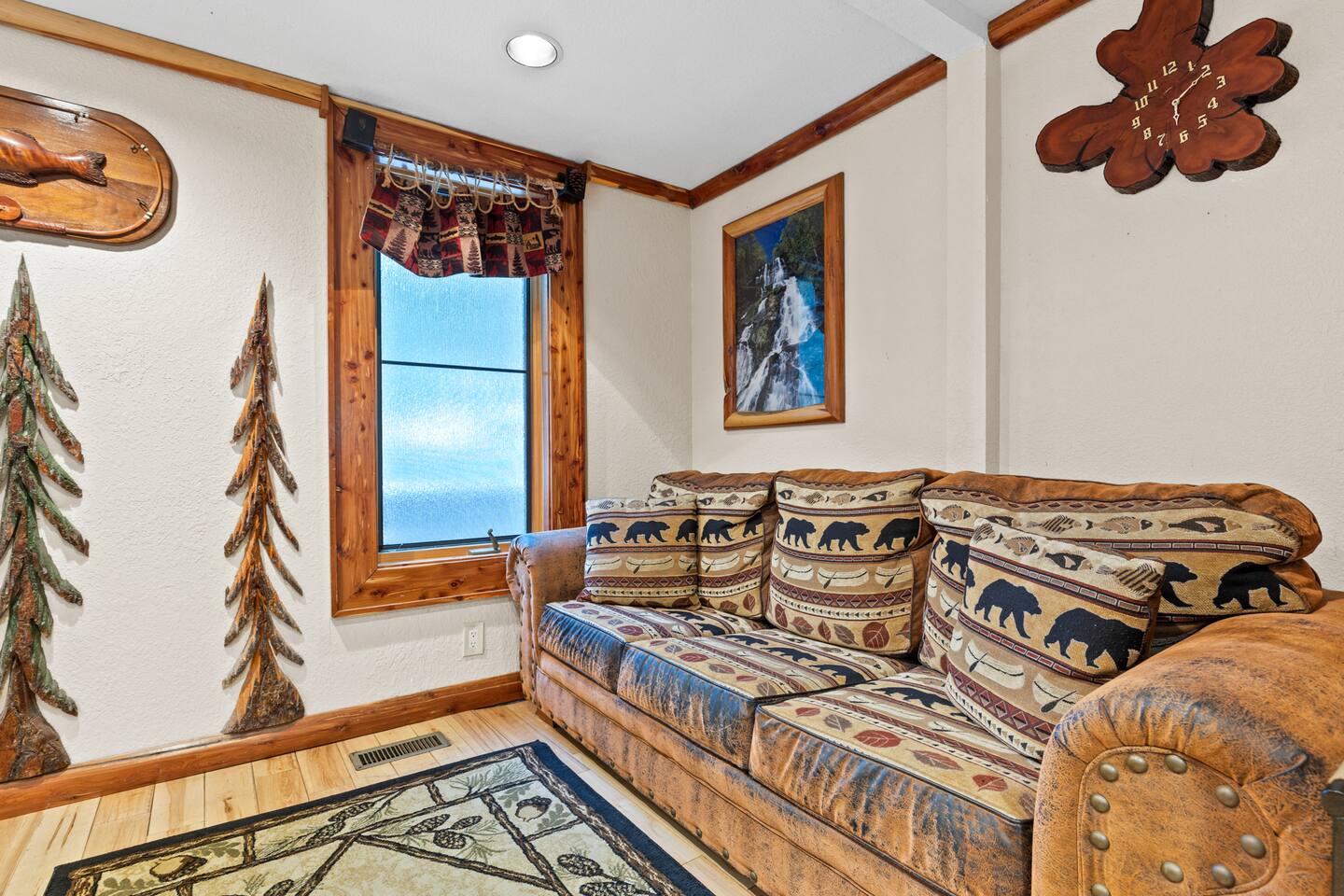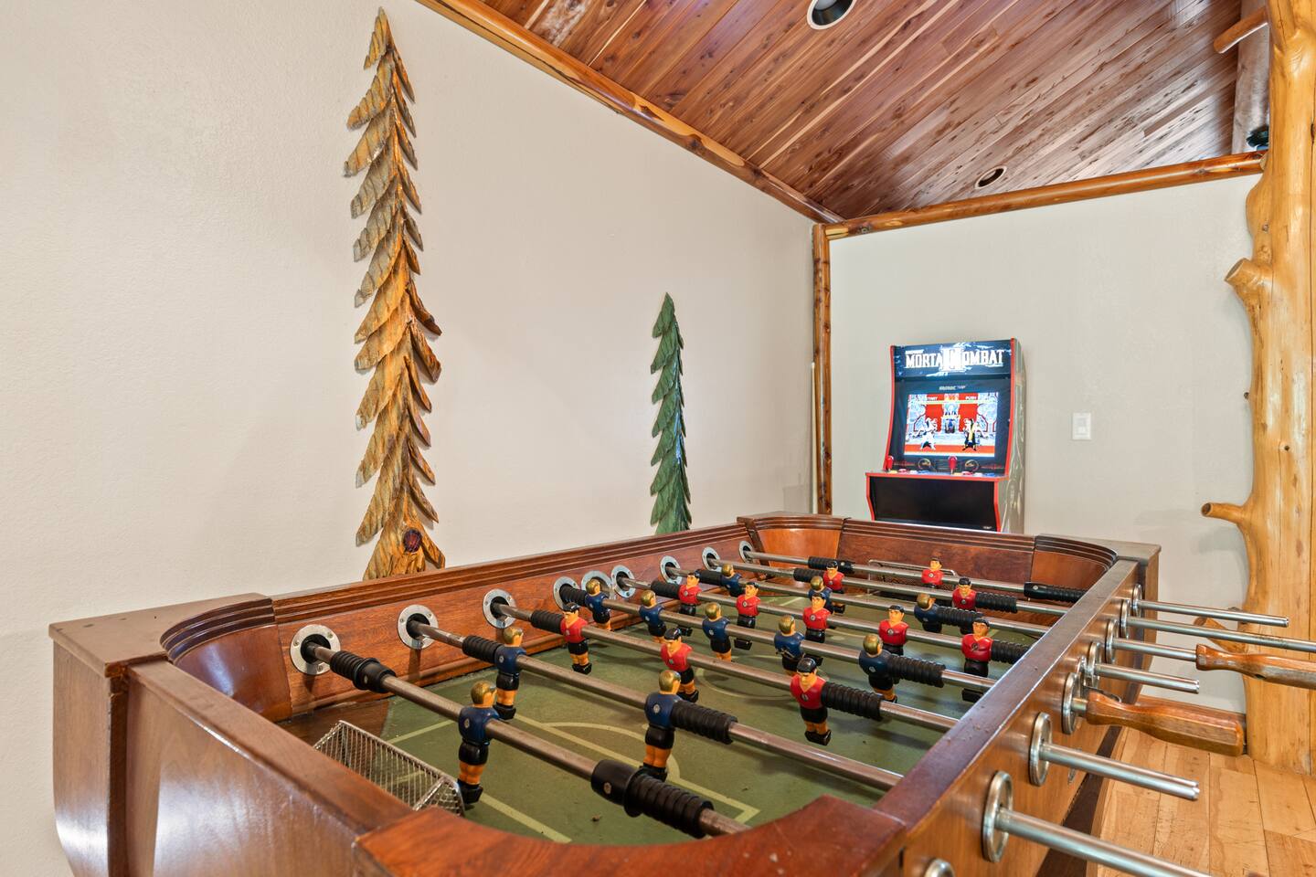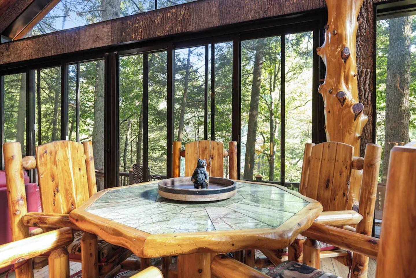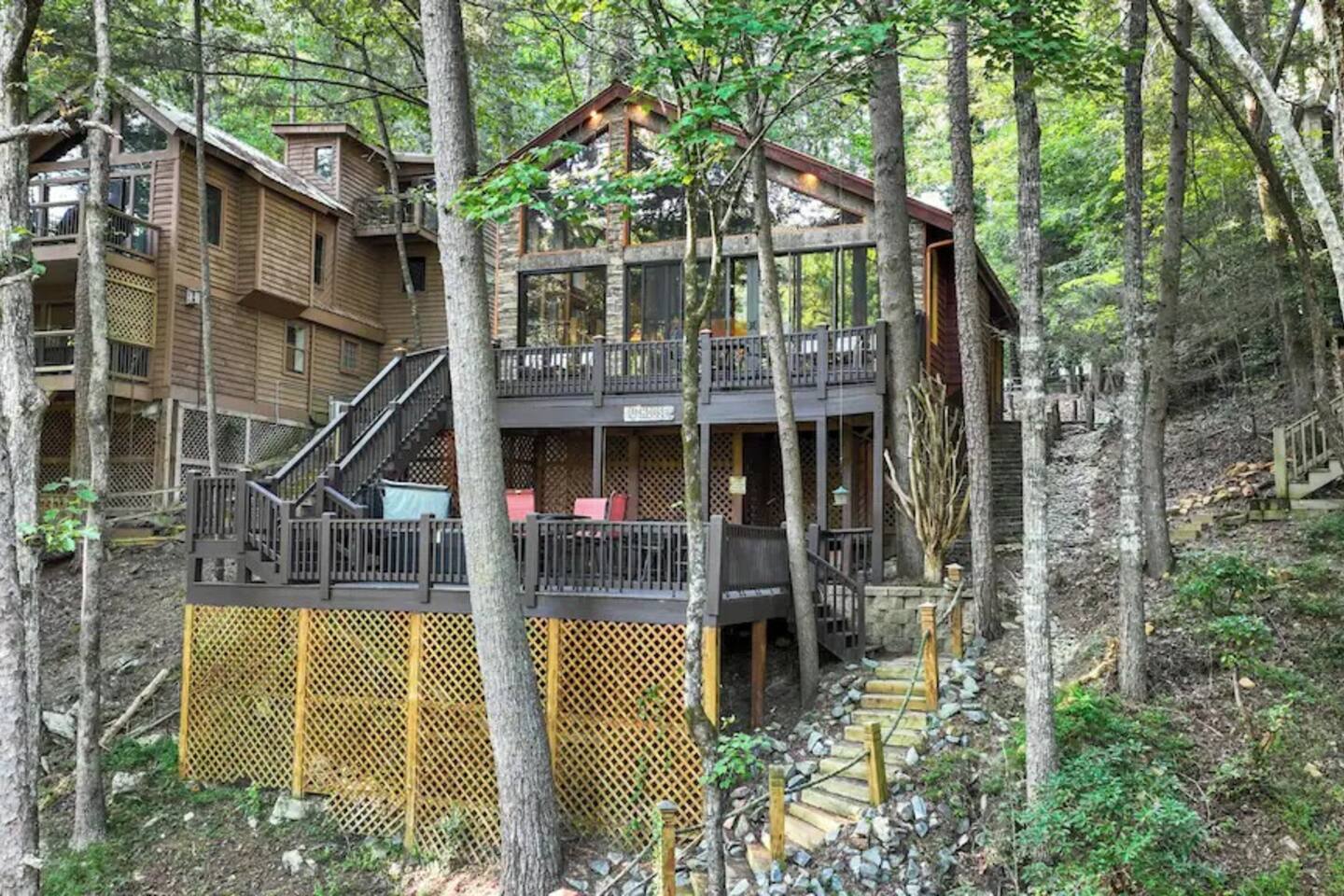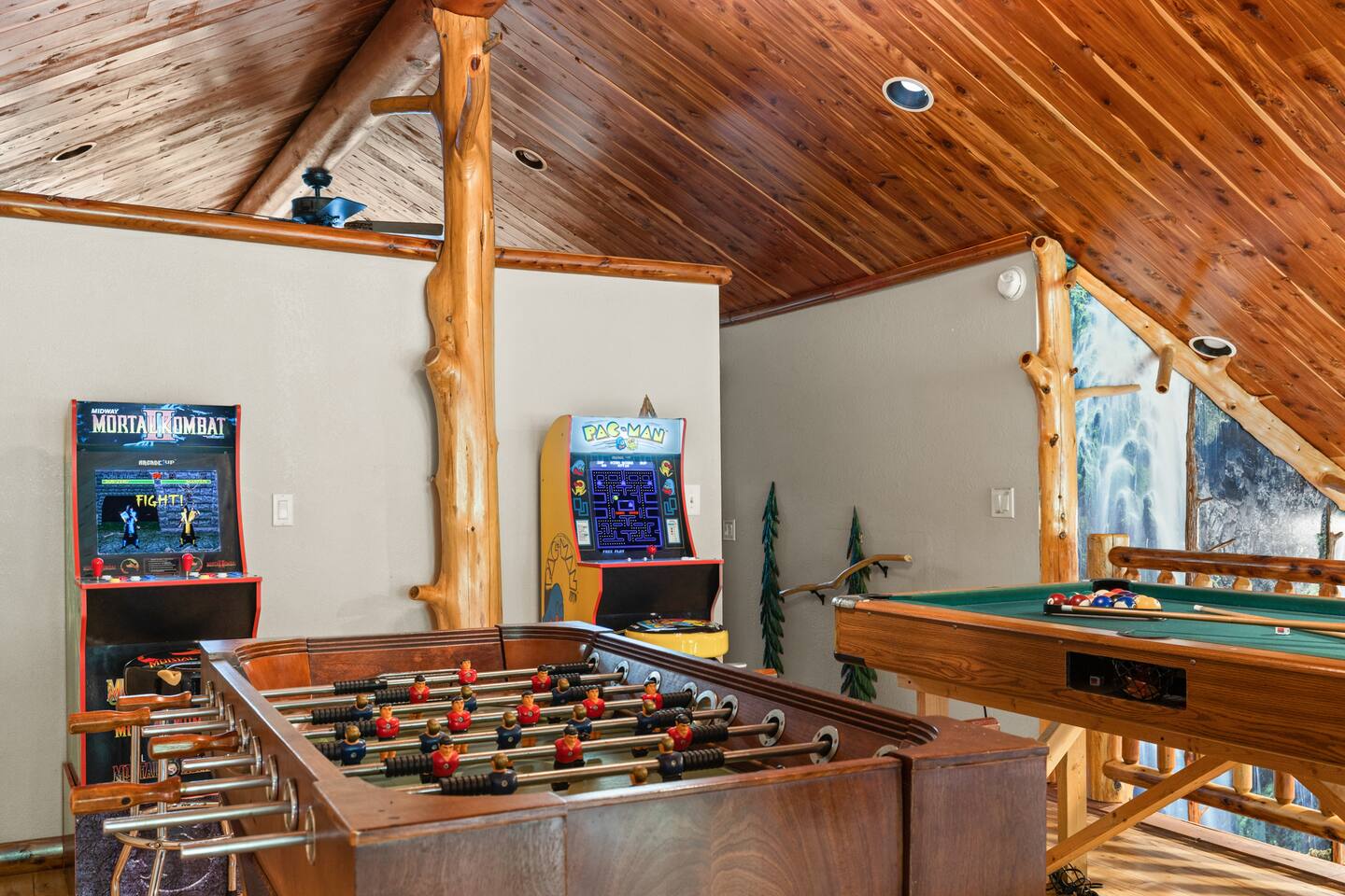 🌟We offer a 5% discount to our primary bookers/ guests who are seniors, military, and first responders!🌟 ✨Key Features: ★ Main level King Master suite with a private bath, walk-in shower, seasonal gas fireplace, and a 42" flat-screen TV. ★ Upper level King bedroom with a private bath, walk-in shower, bunk beds, and a 42" flat-screen TV. ★ Great Room with a 72" flat-screen HDTV, cable, seasonal gas fireplace, and a comfortable sectional sofa. ★ Fully equipped kitchen with an economy-sized oven. ★ Entertainment options including a pool table, foosball table, and arcade games. ★ Private deck with a hot tub, fire pit, and direct access to the riverbank. ★ Fly fishing from the private dock. ★ Dog-friendly (leash required per community rules -- A pet fee of $50/pet/night applies with a $150 per stay minimum, with potential discounts for multiple pets or longer stays). 🏡 Welcome to Whitewater Adventure Lodge - Where Luxury Meets Nature! Imagine waking up to the gentle sound of the Cartecay River flowing right outside your window. As the morning sun dances on the water, you sip your coffee on the deck, surrounded by the serenity of nature. This is not just a getaway; it’s an experience that awaits you at Whitewater Adventure Lodge. ✨The Journey Begins: Your adventure starts the moment you step into the grand great room. The towering ceilings and expansive windows frame the picturesque river views, inviting you to unwind and immerse yourself in the tranquil surroundings. The 72" HDTV with surround sound is perfect for a cozy movie night, while the sectional sofa beckons you to relax by the seasonal gas fireplace. ✨A Culinary Haven: As you explore further, the custom kitchen reveals itself as a chef's paradise. Picture yourself preparing a feast with high-end appliances and ample counter space. The aroma of a delicious meal fills the air as you gather around the dining table, sharing stories and laughter with family and friends. ✨Retreat to Luxury: In the evening, retreat to the King Master Suite on the main level. The luxurious king bed promises a restful night's sleep, while the seasonal gas fireplace adds a touch of warmth and romance. A private bath with a walk-in shower and a 42" flat-screen TV complete this haven of comfort. Upstairs, the second King bedroom offers a cozy retreat with its own private bath, walk-in shower, and additional bunk beds, making it perfect for families. ✨Fun and Games: For those seeking entertainment, the loft is a treasure trove of fun. Imagine challenging your loved ones to a game of pool or foosball, or reliving your childhood with the arcade games. Laughter echoes through the lodge, creating memories that will last a lifetime. ✨Nature’s Embrace: Step outside onto your private deck and let the beauty of the Cartecay River captivate you. The hot tub invites you to soak your cares away as you gaze at the stars. Gather around the fire pit, roasting marshmallows and sharing stories late into the night. And for the adventurous, the private dock offers the perfect spot for fly fishing, where the river whispers its secrets to those who listen. ✨A Home for All: Whitewater Adventure Lodge is not just for you; it’s for your furry friends too. Picture your dog happily exploring the surroundings, making this a true family getaway. ✨Modern Comforts: With WiFi and all the household essentials provided, your stay is effortless and comfortable. From linens and towels to a washer/dryer and initial supplies, every detail is thoughtfully prepared for you. ✨Your Story Awaits: At Whitewater Adventure Lodge, every moment is a story waiting to be told. Whether you seek adventure, relaxation, or a bit of both, this riverside retreat is your perfect sanctuary. Book now and let the magic of Whitewater Adventure Lodge become part of your story. Your unforgettable riverside adventure starts here! Escape to Whitewater Adventure Lodge for a luxurious and memorable retreat. 🔑 Book now and experience the perfect blend of nature, comfort, and entertainment. Your riverside adventure awaits! Please check out all our properties in our profile as we have homes of all different sizes and amenities and locations to suit your needs!