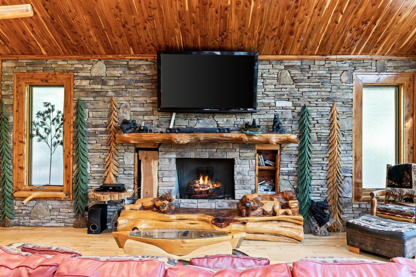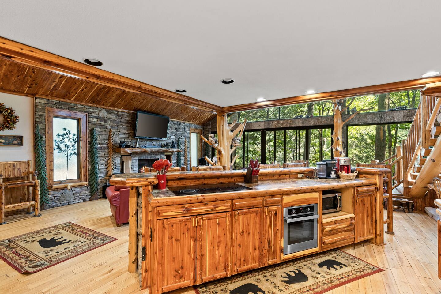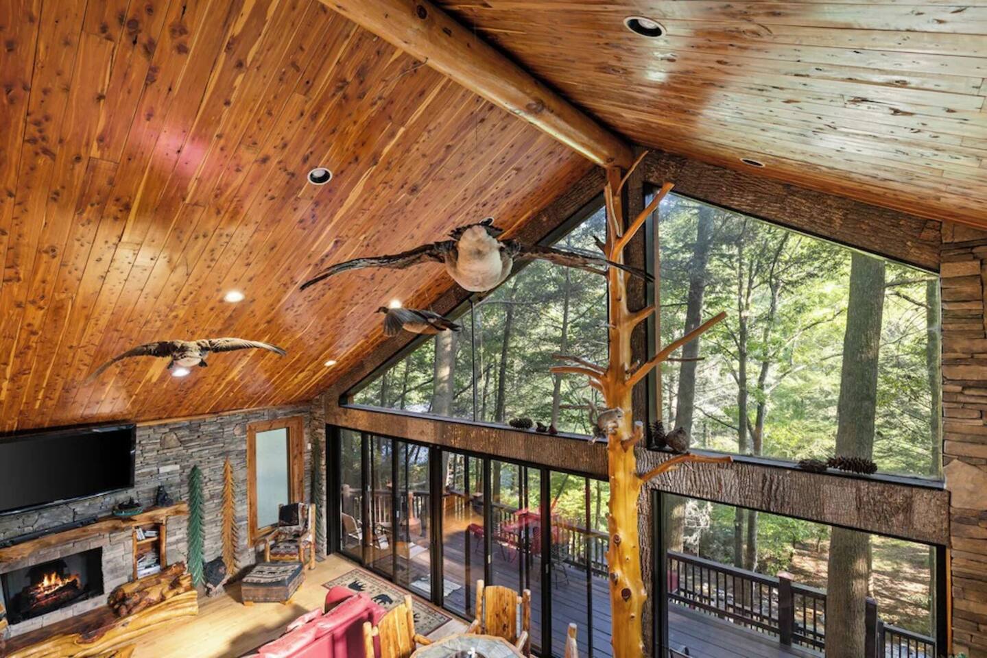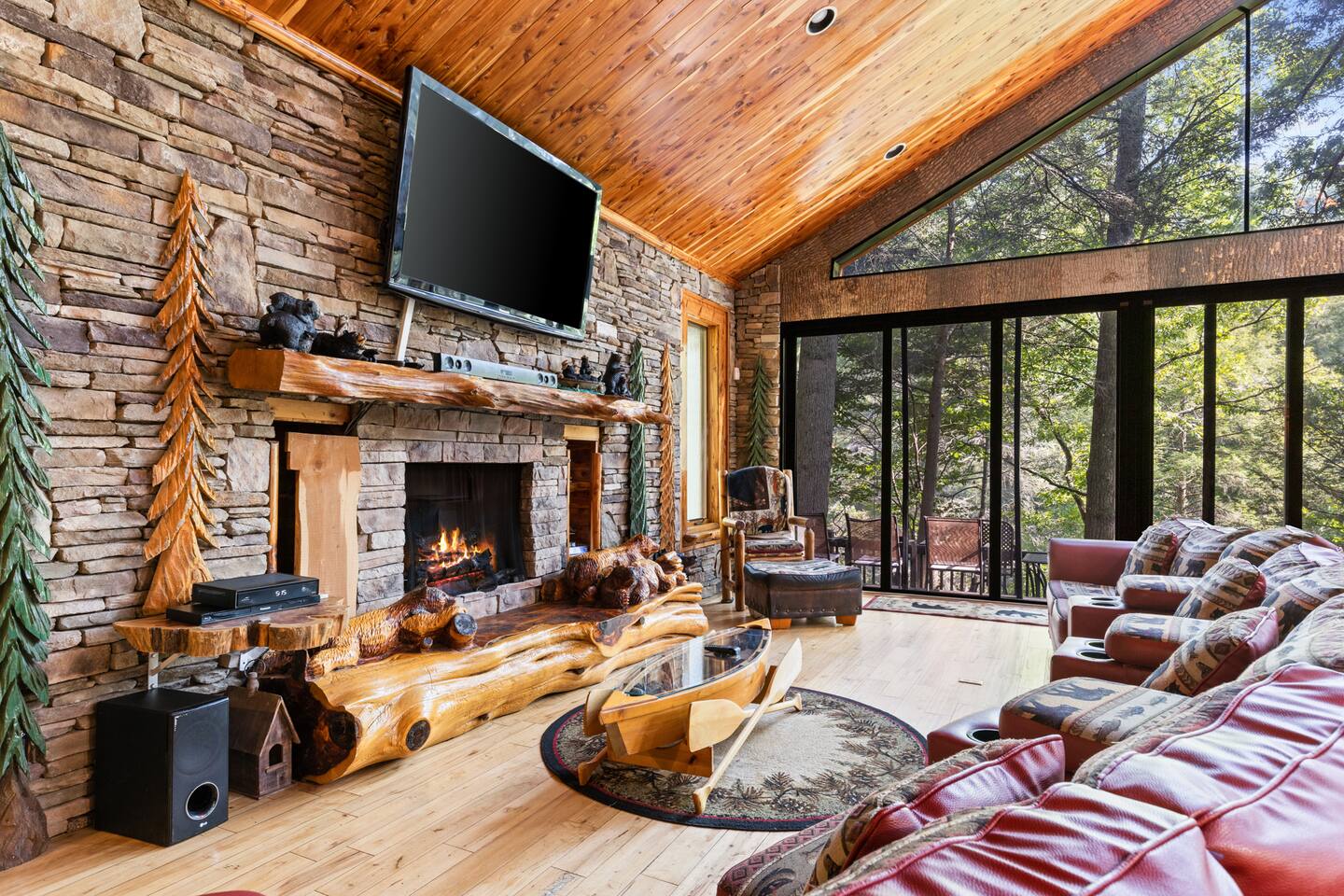 ✨Wake up to the serene sounds of Cartecay River at your dream retreat! Enjoy coffee on the nature-surrounded deck, then relax in the great room with a 72" HDTV and cozy fireplace. Cook in a custom kitchen and unwind in luxurious bedrooms with private baths and fireplaces. The loft offers endless fun, while the hot tub and fire pit create perfect starry nights. Bring your pets and enjoy fly fishing from your private dock. Book your riverside escape today!