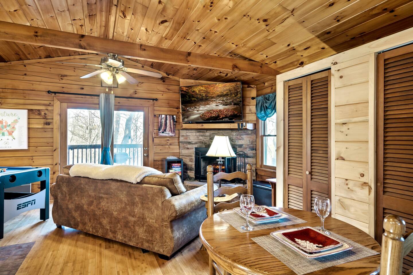 We offer a 5% discount to our primary bookers/ guests who are seniors, military, and first responders! :) 10 Min drive to Douglas Lake 23 Min drive to Pigeon forge 24 Min drive to Dollywood 39 Min drive to Gatlinburg 40 Min drive to Great Smoky Mountains National Park As part of our Christian values, we donate 10% of income to charity. (*See below for details) Welcome to Cedar Creek Cabin: Your Ultimate Smoky Mountain Getaway! Perched amidst the tranquil expanse of Douglas Lake and the lively attractions of Pigeon Forge and Gatlinburg, our recently refurbished cabin invites you to discover the enchantment of the Smokies in a whole new light. **Why Choose Cedar Creek Cabin:** - Serene Surroundings: Immerse yourself in the tranquility of nature, surrounded by picturesque pasturelands, rolling hills, and a babbling creek at the bottom of the drive. Seasonal views and pastoral charm create an idyllic setting for your escape. - Relaxation and Recreation: Indulge in the ultimate relaxation with our 4-person hot tub, nestled on the private deck, offering a soothing retreat under the stars. For some family fun, our cabin boasts an array of board games and a versatile 4-in-1 ESPN Combo Game Table, ensuring endless entertainment for all ages. - Pet-Friendly Haven: Don't leave your furry friends behind! Our cabin welcomes pets, allowing the whole family to enjoy the adventure together. (Separate pet fee applies) - Outdoor Oasis: Step outside to discover your own slice of paradise. Carve your initials in the "Lovers Tree" and savor intimate moments amidst the natural beauty. Fire up the Weber charcoal grill for a classic BBQ experience on the deck, surrounded by scenic views and the soothing sounds of nature. - Modern Comforts: Stay connected with high-speed WiFi and enjoy movie nights with a 65" HDTV Roku entertainment system. The retro NBA Jam arcade game adds a touch of nostalgia, while the indoor gas fireplace creates a cozy ambiance for chilly evenings. **Guests Rave About Cedar Creek Cabin:** "An oasis of calm...perfect for a quiet evening in the hot tub." "A peaceful retreat, immaculately clean and secluded." "The ideal size for a romantic getaway, with easy access to all the attractions." **Inside Your Cozy Retreat:** - Comfortable Living: Retreat to your luxurious memory foam King size bed with fireplace for the ambience and a restful night's sleep. An additional sleeper sofa offers flexibility for families or couples. - Culinary Delights: Channel your inner chef in the fully stocked kitchen, complete with a Keurig coffee machine for your morning brew. The open-plan layout seamlessly connects the kitchen to the charming living space, creating a warm and inviting atmosphere for gathering and cooking together. **Outdoor Adventures Await:** Embark on leisurely walks through the scenic pastures and farmlands, or venture to Douglas Lake for a day of watersports, fishing, and sun-soaked relaxation. **Book Your Smoky Mountain Escape Today!** Escape the ordinary and embrace the extraordinary at Cedar Creek Cabin. Reserve your stay now and let us pamper you with the ultimate Sevierville experience! ◈◇Book Today & Let Us Take Care Of You In Sevierville!◇◈ Please check out all our properties in our profile as we have cabins of all different sizes and amenities to suit your needs. *Our preferred charity organization is Compassion International, whom serve underprivileged children around the world. Please look them up as they are a great organization and allow you to sponsor children!